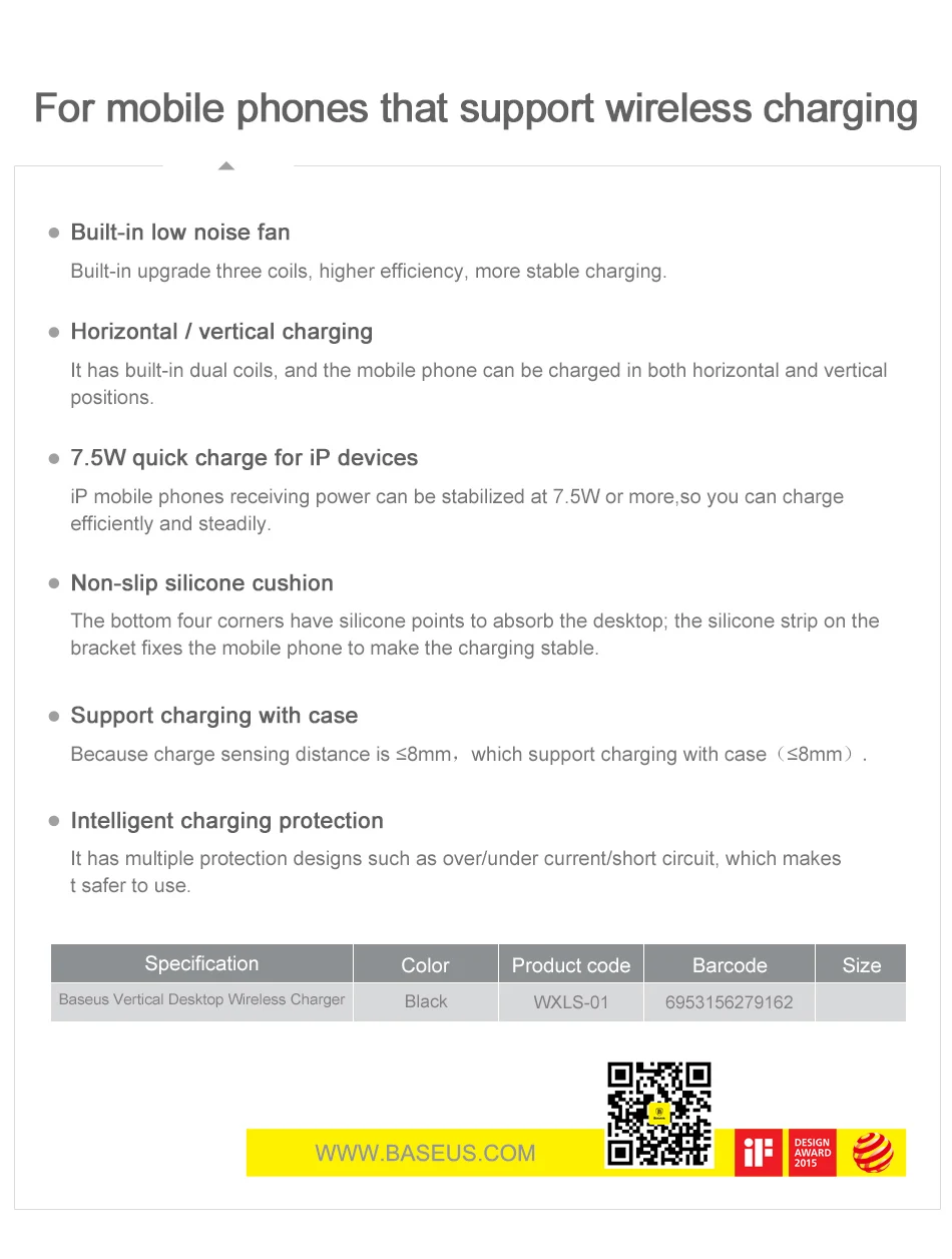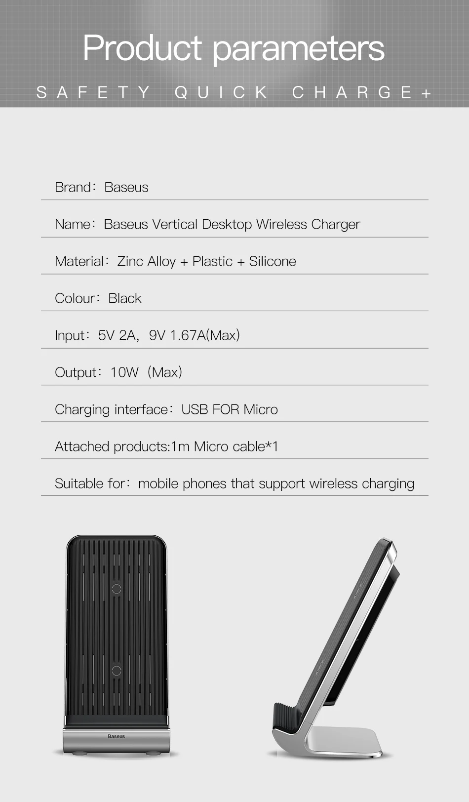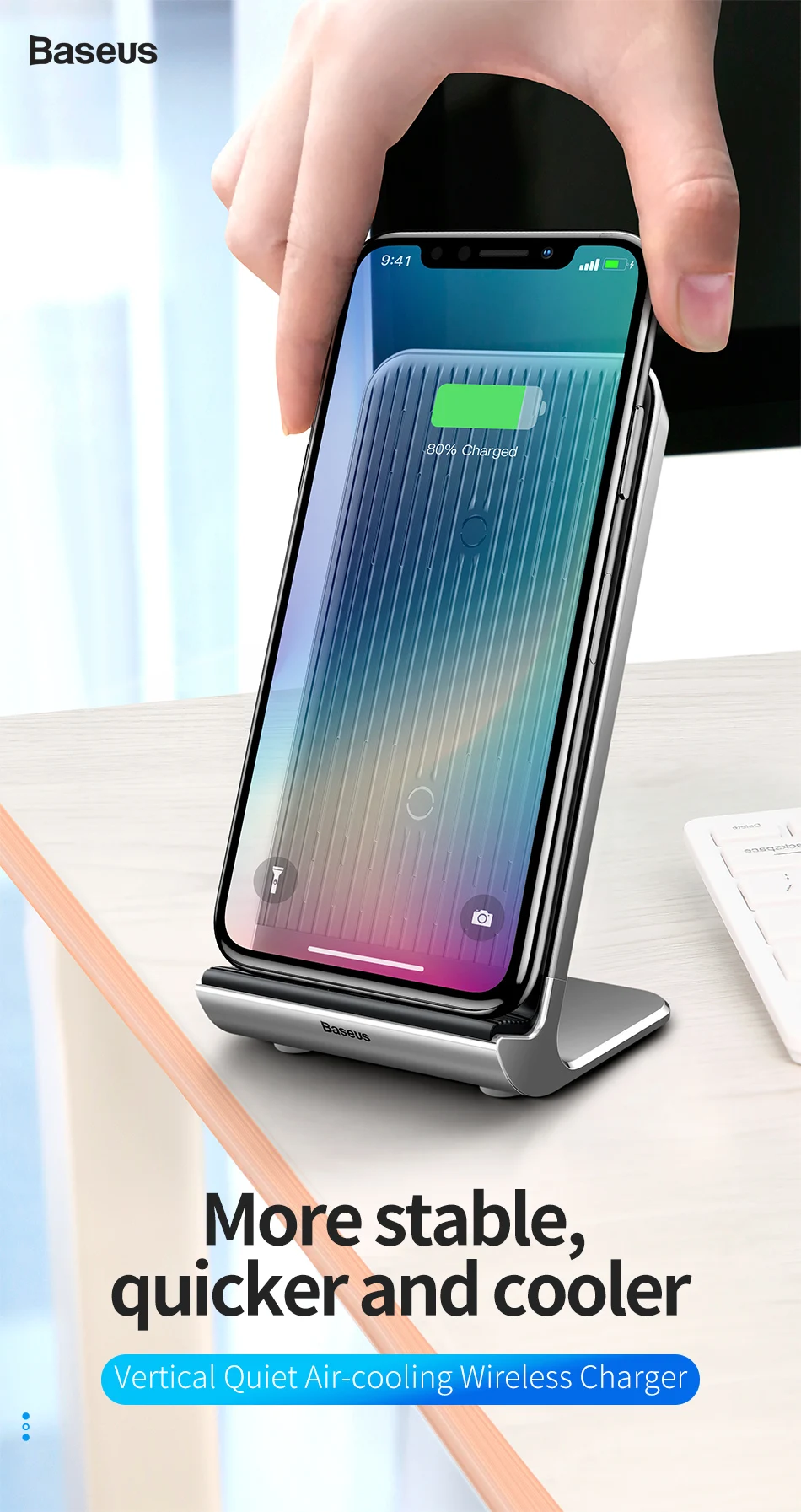 Baseus 10W Qi Wireless Charger For iPhone X XS Max Xr Samsung S9 S8 Note 9 Fast USB Desktop Wireless Charging Pad Dock Station