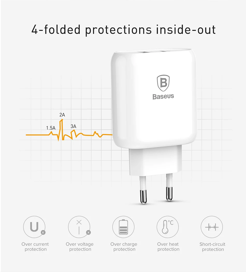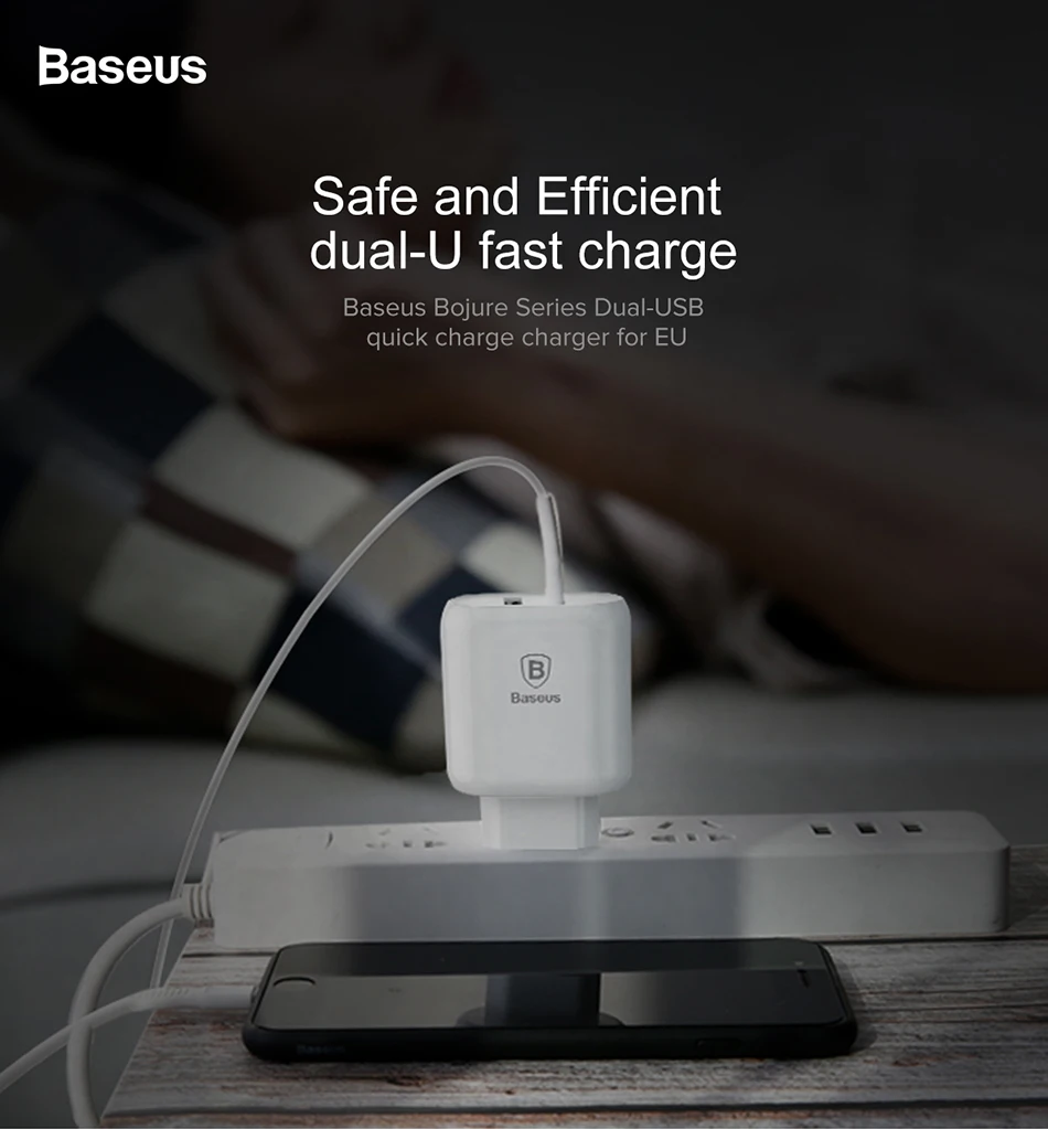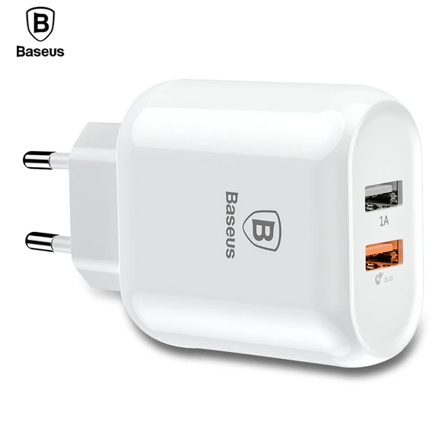 Baseus Quick Charge QC 3.0 Dual USB Phone Charger For iPhone X 8 Universal Travel Wall USB Charger For Samsung S9 Xiaomi EU Plug