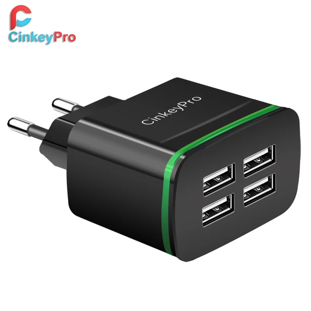 CinkeyPro USB Charger for iPhone Samsung Android 5V 4A 4-Ports Mobile Phone Universal Fast Charge LED Light Wall Adapter