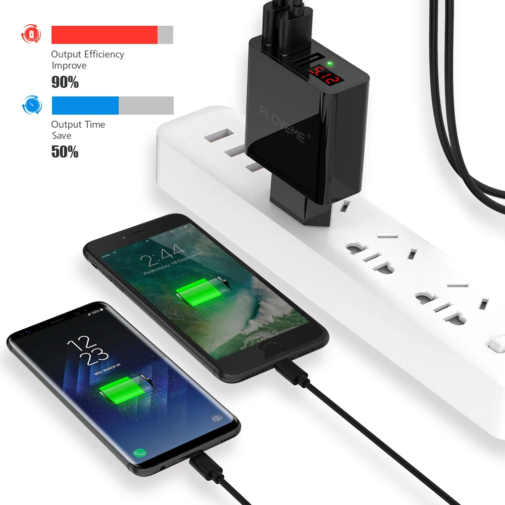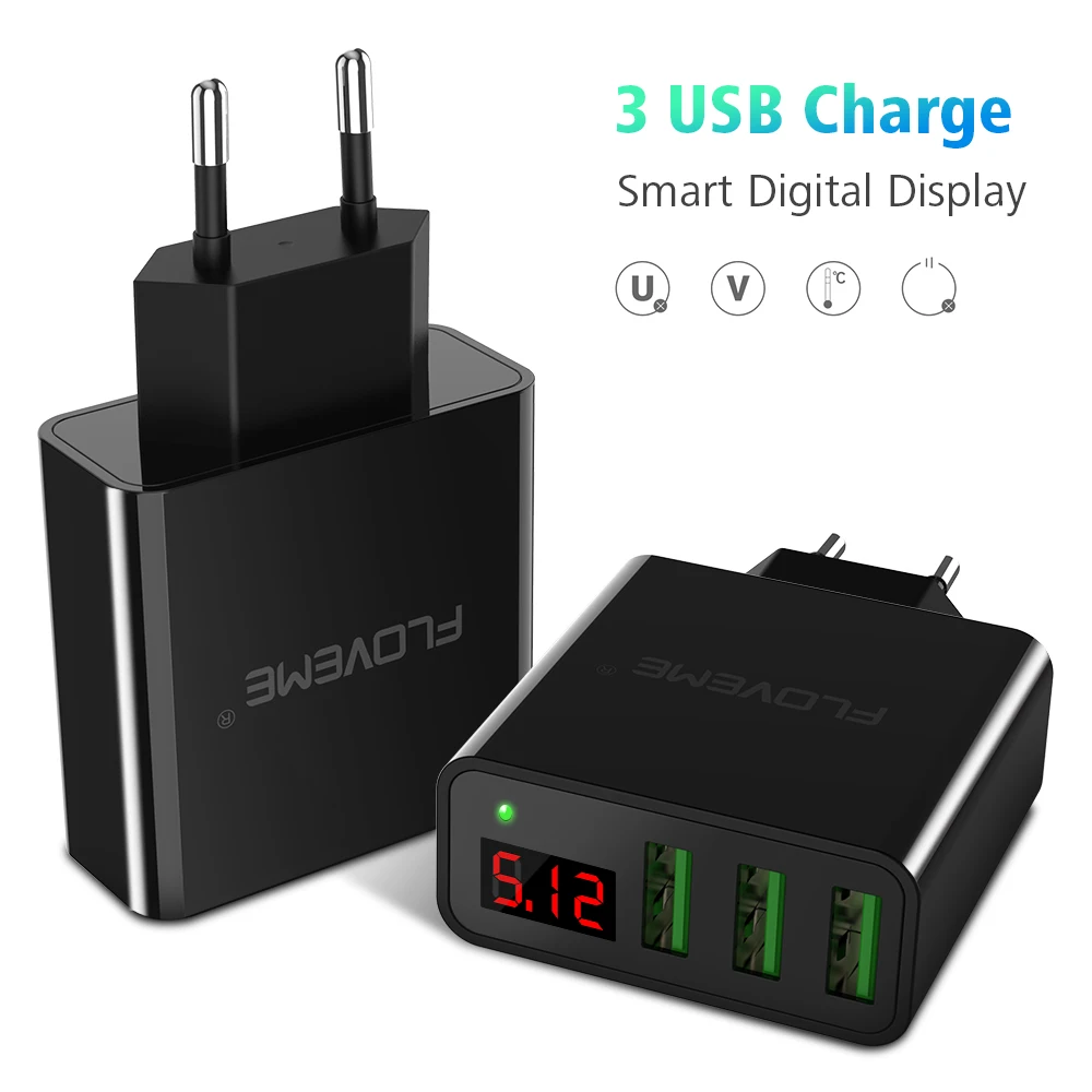 FLOVEME LED Display 3 USB Charger For iPhone X XS Plus 8 EU Plug Mobile Phone USB Charger Charging Adapter Universal For Samsung