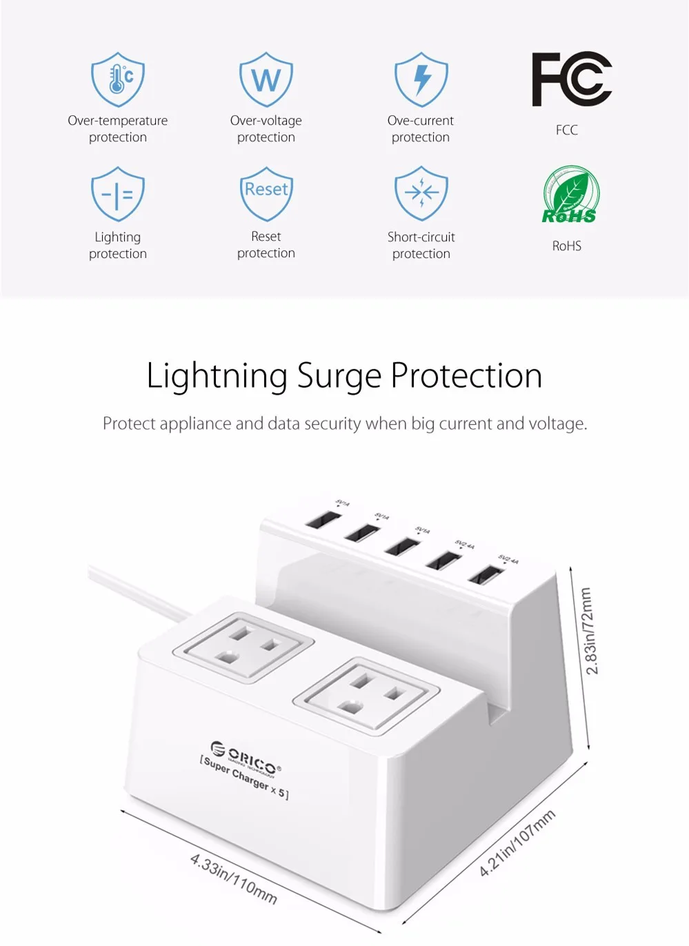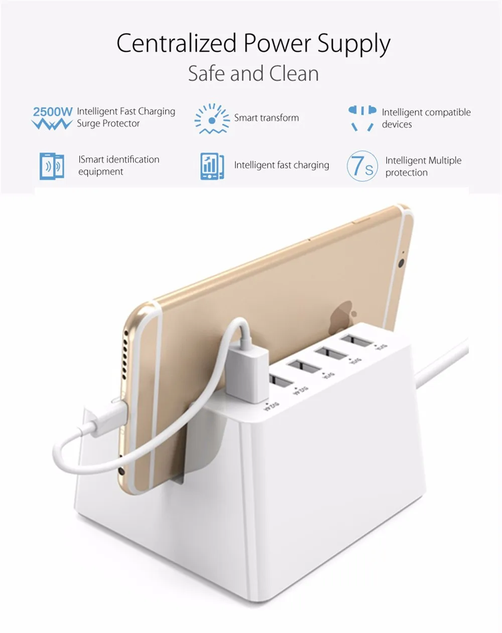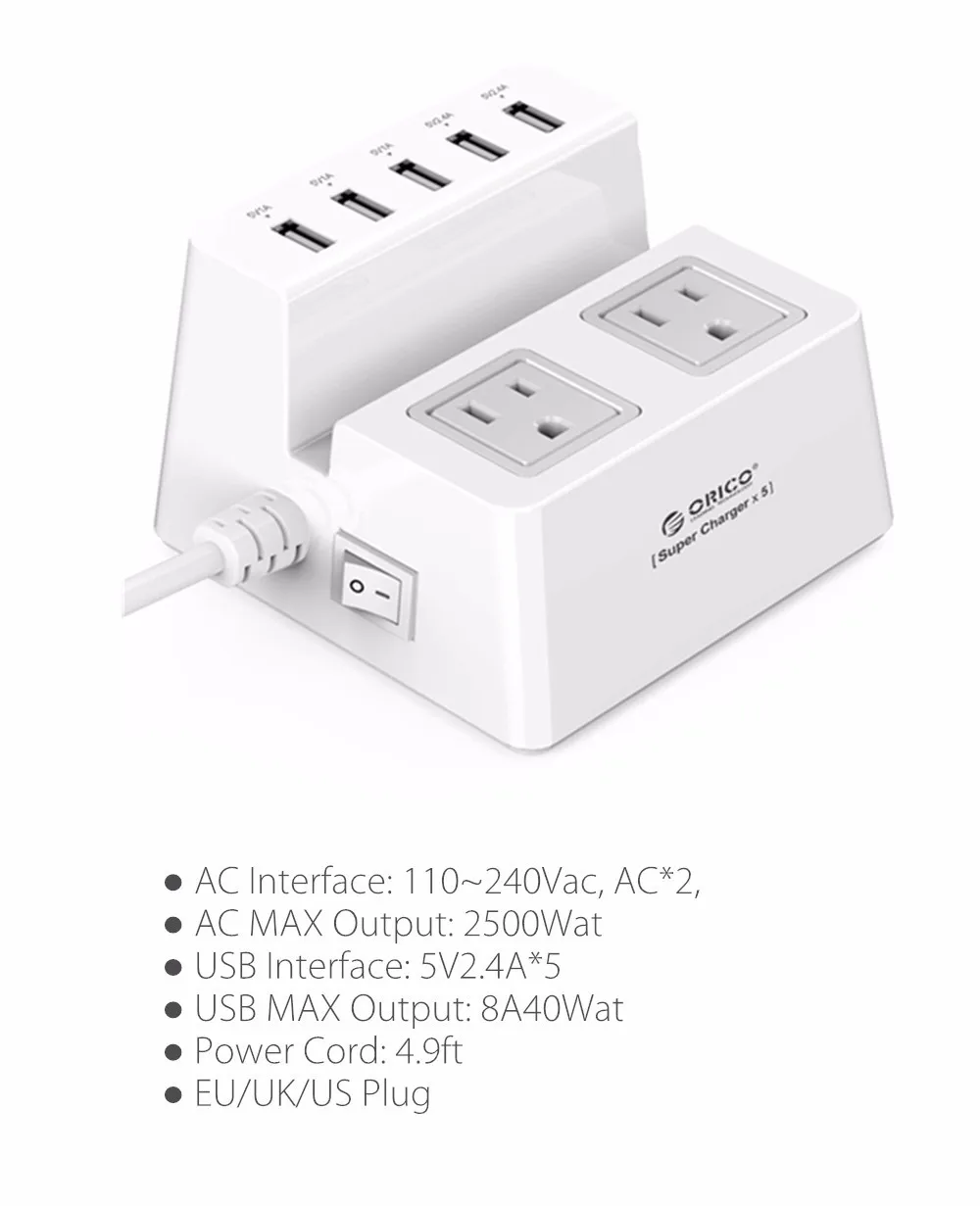 ORICO ODC-2A5U-V1 Smart Charging Desktop Charger 5 USB Ports Extension Socket for iPhone 7 Mobile Phone