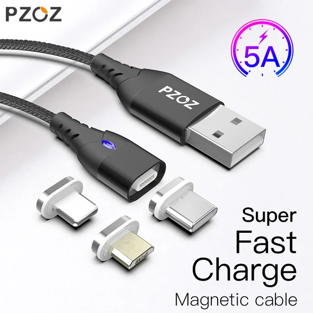 PZOZ 5A Magnetic Cable Micro usb Type C Super Fast Charging Phone Microusb Type-C Magnet Charger usb c For iphone huawei xiaomi